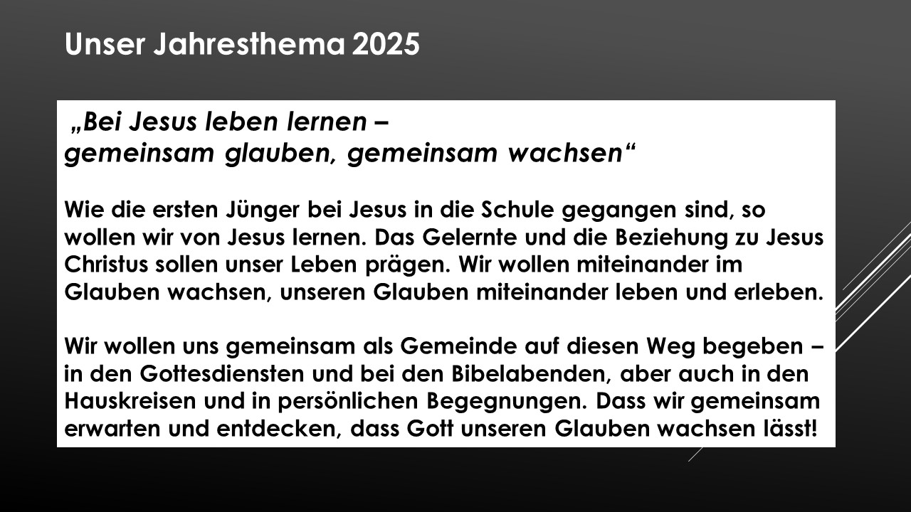 Am kommenden Sonntag feiern wir um 11:00 Gottesdienst.